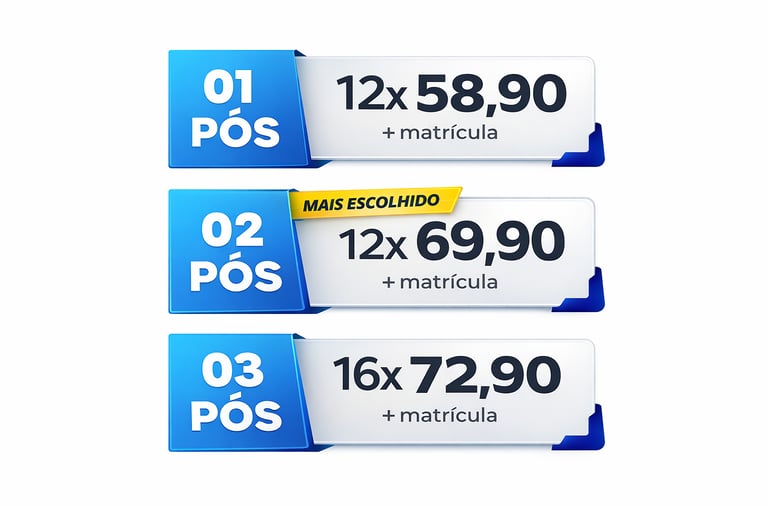 Se você optar por cursar mais de uma Pós, você ganhará um super desconto em cada curso.